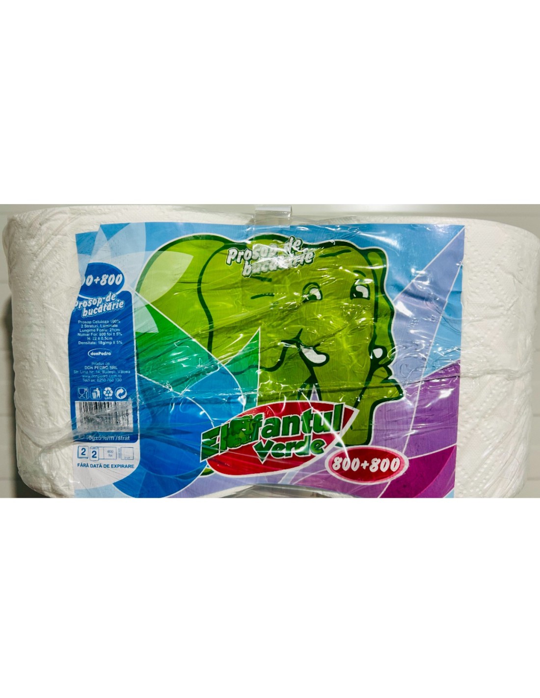 Setul conține 2 role de prosoape din hârtie marca Elefant, fiecare cu 800 de foi, realizate din hârtie albă de calitate, în 2 straturi. Prosoapele sunt absorbante, rezistente și ideale pentru utilizare în bucătării, spații comerciale, birouri sau acasă.
